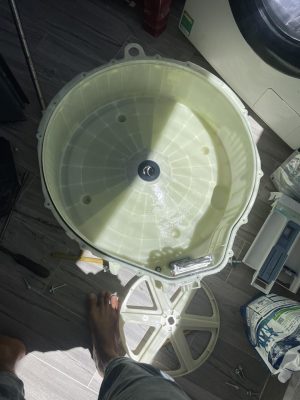 - Sau đó cẩn thận nhấc lồng giặt ra khỏi máy giặt.